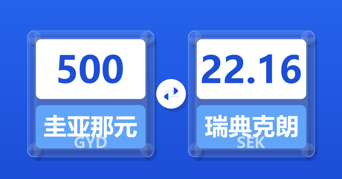 500 圭亚那元 (GYD) = 22.18 瑞典克朗 (SEK)