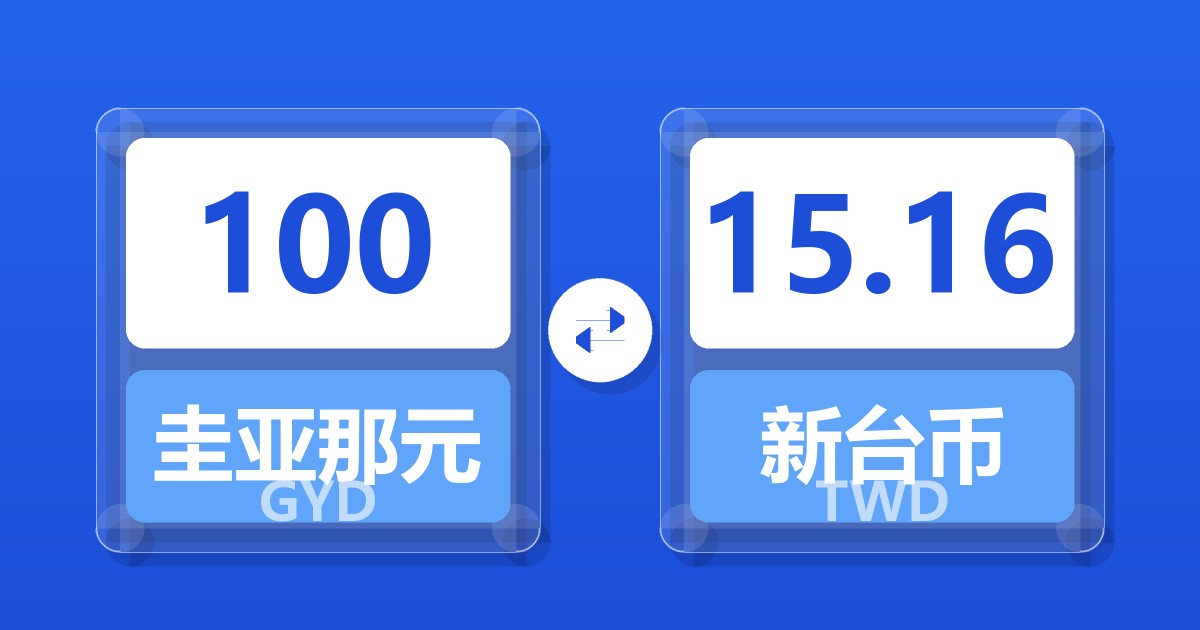 100 圭亚那元 (GYD) = 15.14 新台币 (TWD)