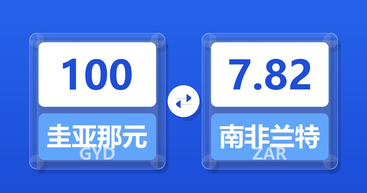 100 圭亚那元 (GYD) = 7.82 南非兰特 (ZAR)