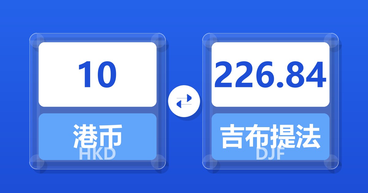 10 港币 (HKD) = 226.91 吉布提法郎 (DJF)