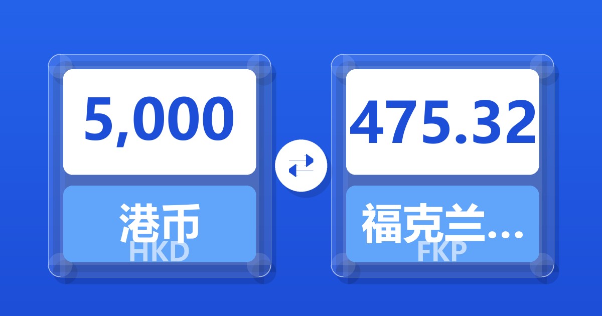 5,000 港币 (HKD) = 475.79 福克兰群岛镑 (FKP)
