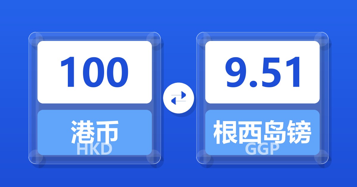 100 港币 (HKD) = 9.52 根西岛镑 (GGP)