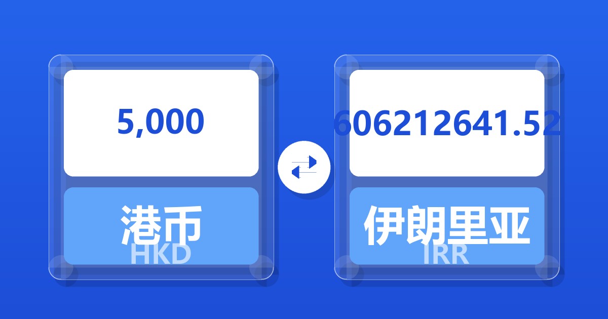 5,000 港币 (HKD) = 688,359,915.16 伊朗里亚尔 (IRR)