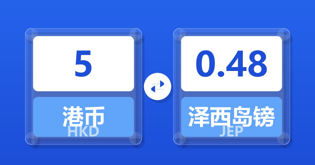 5 港币 (HKD) = 0.48 泽西岛镑 (JEP)