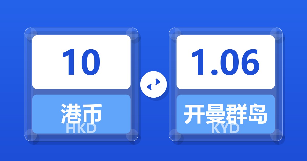 10 港币 (HKD) = 1.06 开曼群岛元 (KYD)