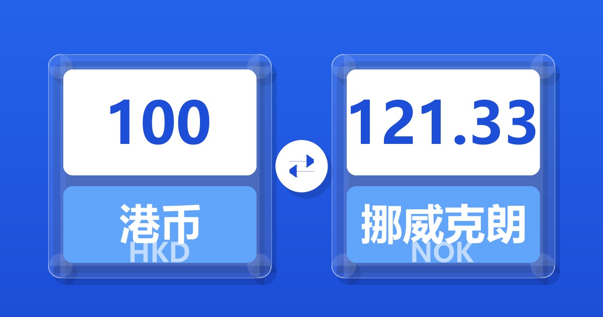 100 港币 (HKD) = 122.12 挪威克朗 (NOK)