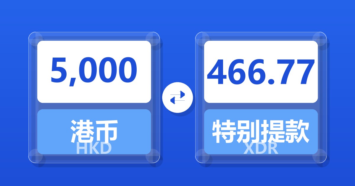 5,000 港币 (HKD) = 465.83 特别提款权 (XDR)