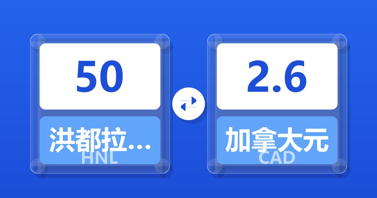 50 洪都拉斯伦皮拉 (HNL) = 2.61 加拿大元 (CAD)