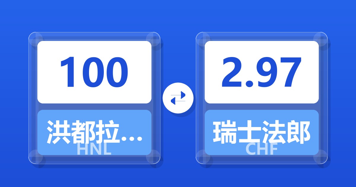 100 洪都拉斯伦皮拉 (HNL) = 2.98 瑞士法郎 (CHF)