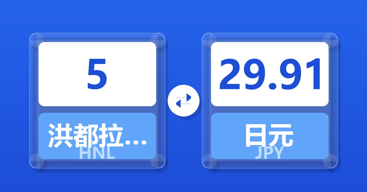5 洪都拉斯伦皮拉 (HNL) = 29.84 日元 (JPY)
