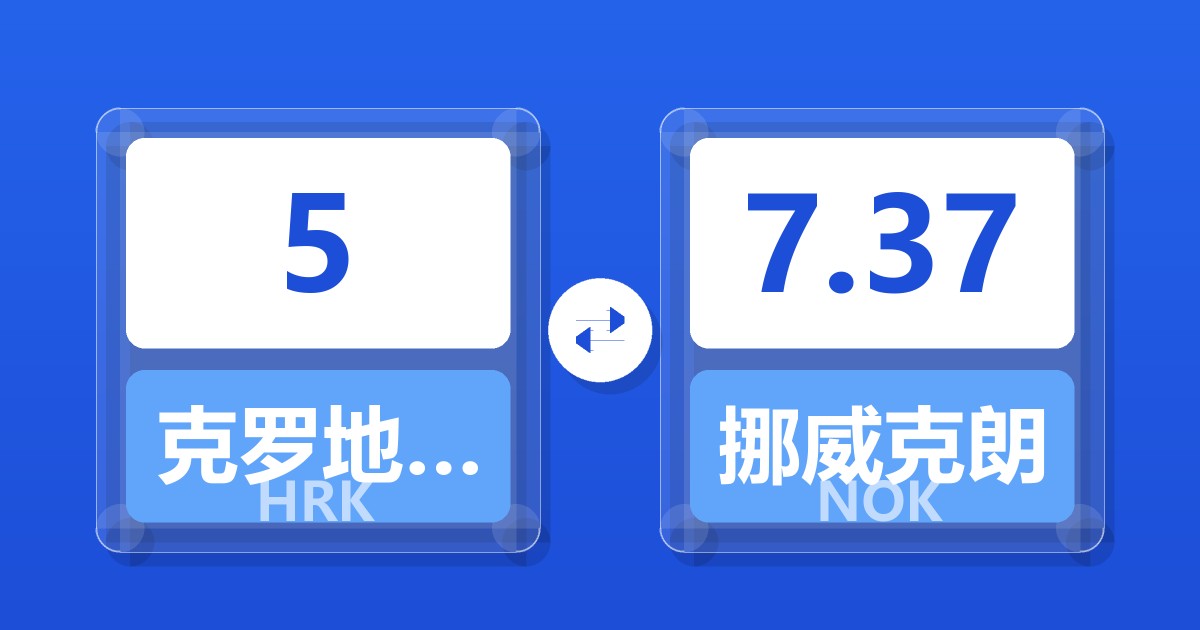 5 克罗地亚库纳 (HRK) = 7.41 挪威克朗 (NOK)