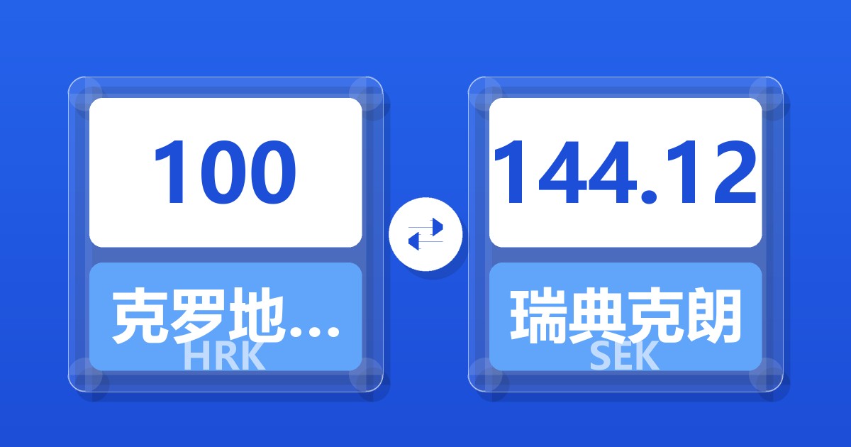 100 克罗地亚库纳 (HRK) = 144.19 瑞典克朗 (SEK)