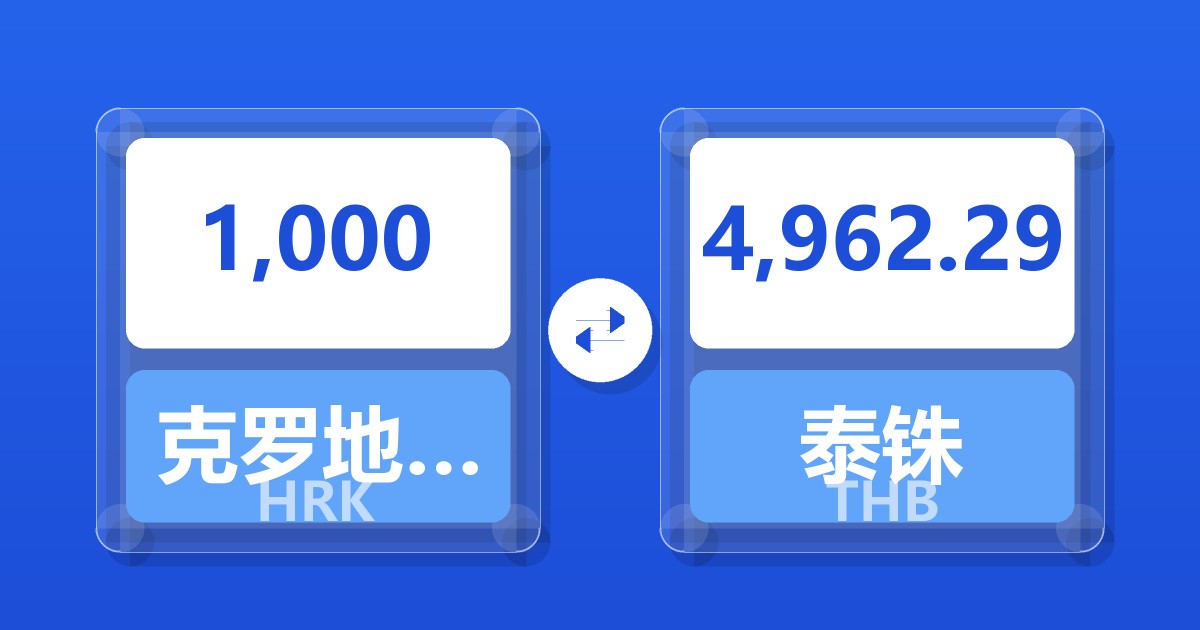 1,000 克罗地亚库纳 (HRK) = 4,962.29 泰铢 (THB)