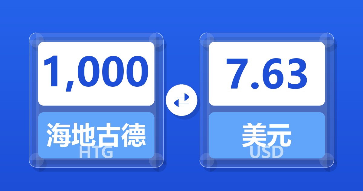 1,000 海地古德 (HTG) = 7.62 美元 (USD)