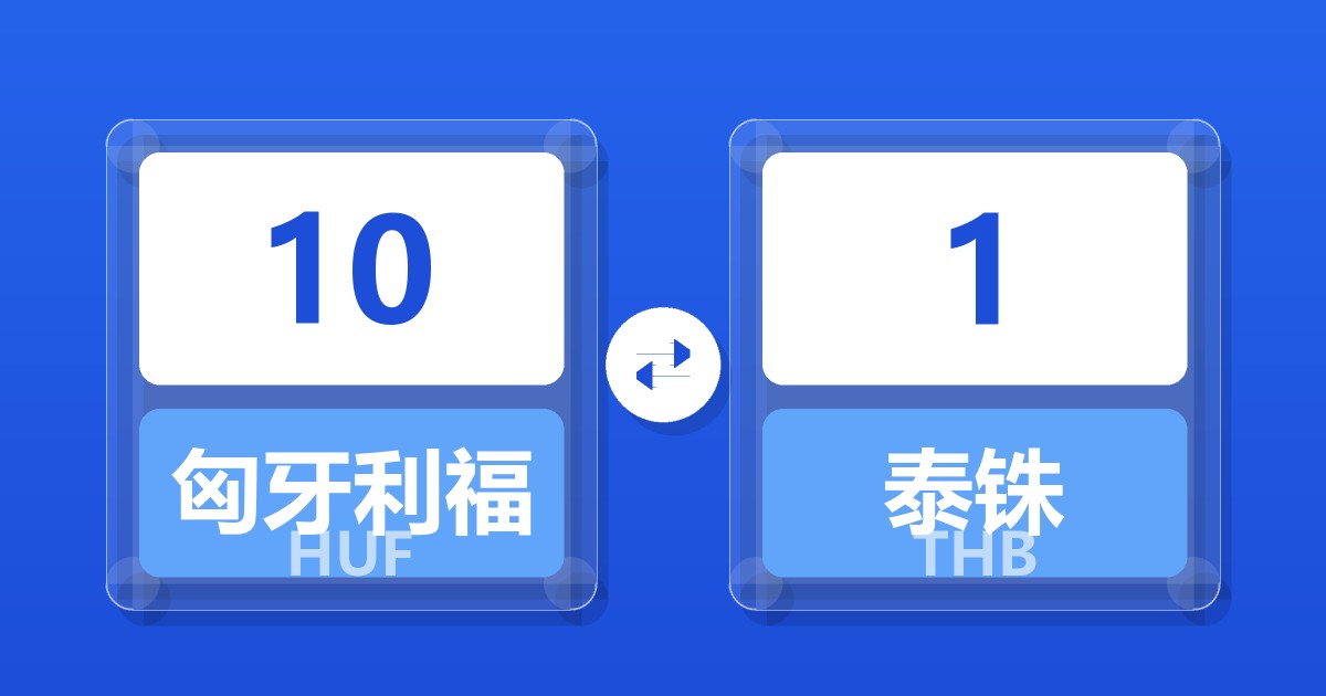 10 匈牙利福林 (HUF) = 0.99 泰铢 (THB)