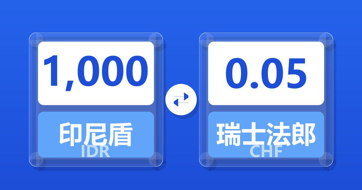 1,000 印尼盾 (IDR) = 0.05 瑞士法郎 (CHF)