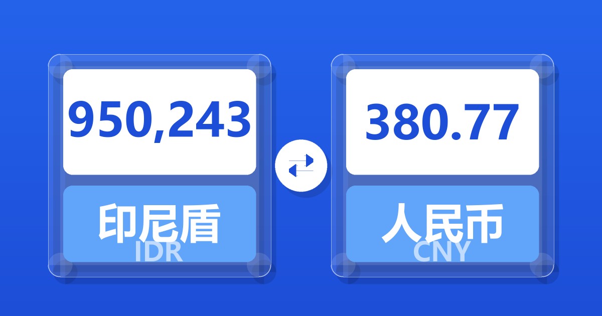 950,243 印尼盾 (IDR) = 382.30 人民币 (CNY)