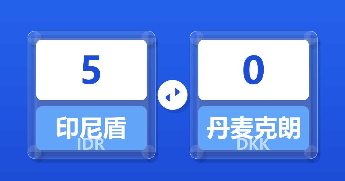 5 印尼盾 (IDR) = 0.00 丹麦克朗 (DKK)