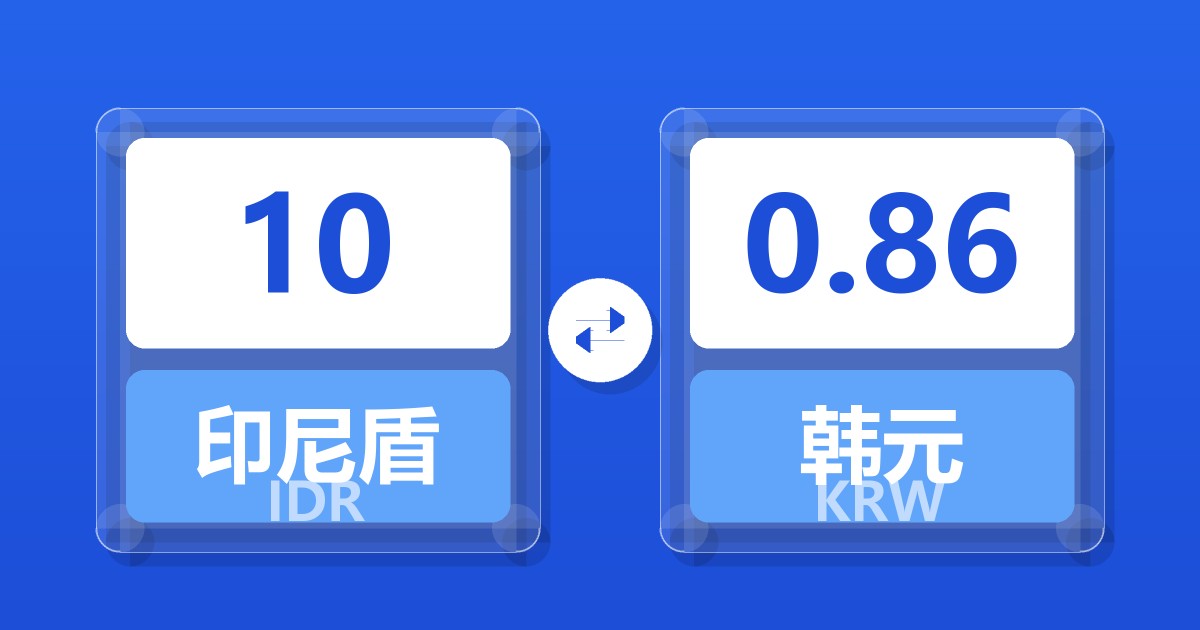 10 印尼盾 (IDR) = 0.87 韩元 (KRW)