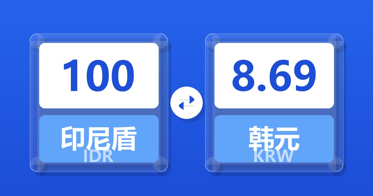 100 印尼盾 (IDR) = 8.69 韩元 (KRW)