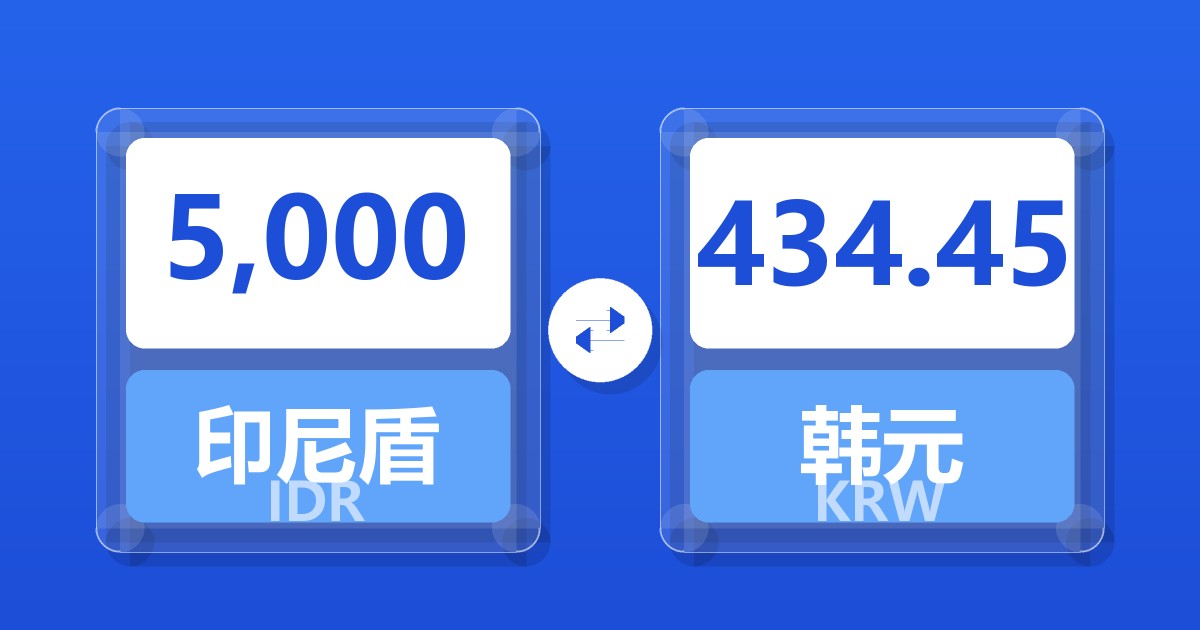 5,000 印尼盾 (IDR) = 434.45 韩元 (KRW)