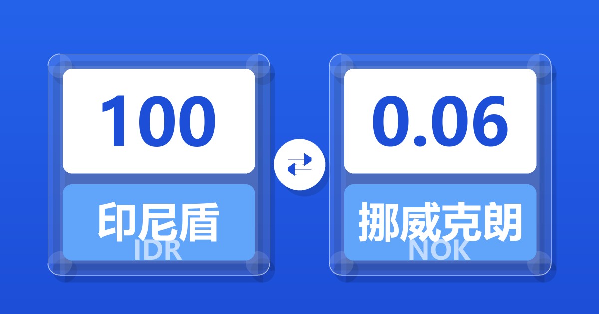 100 印尼盾 (IDR) = 0.06 挪威克朗 (NOK)