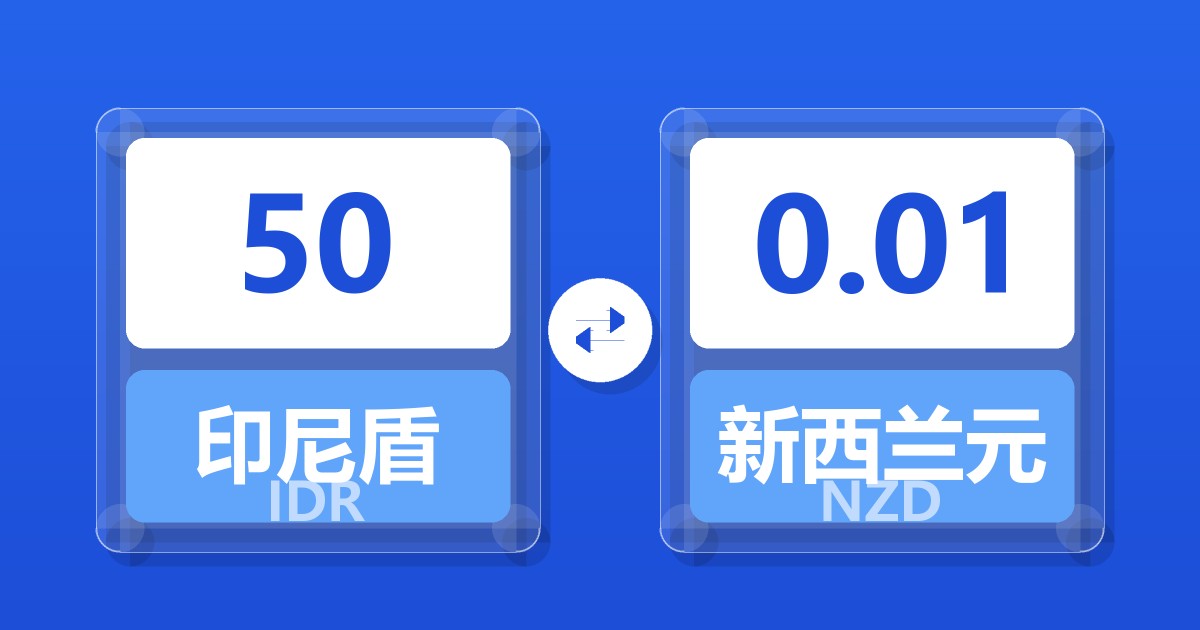 50 印尼盾 (IDR) = 0.01 新西兰元 (NZD)