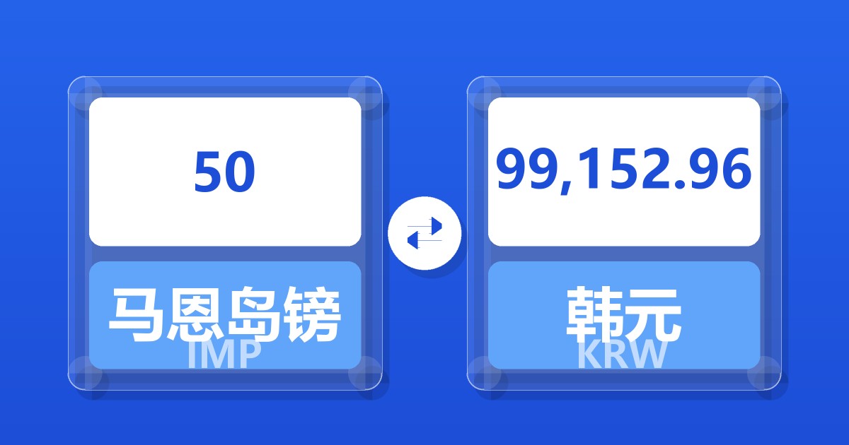 50 马恩岛镑 (IMP) = 99,158.02 韩元 (KRW)