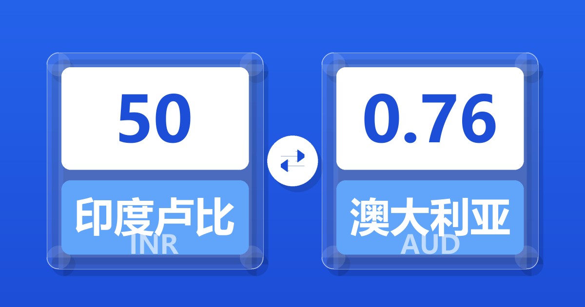 50 印度卢比 (INR) = 0.77 澳大利亚元 (AUD)