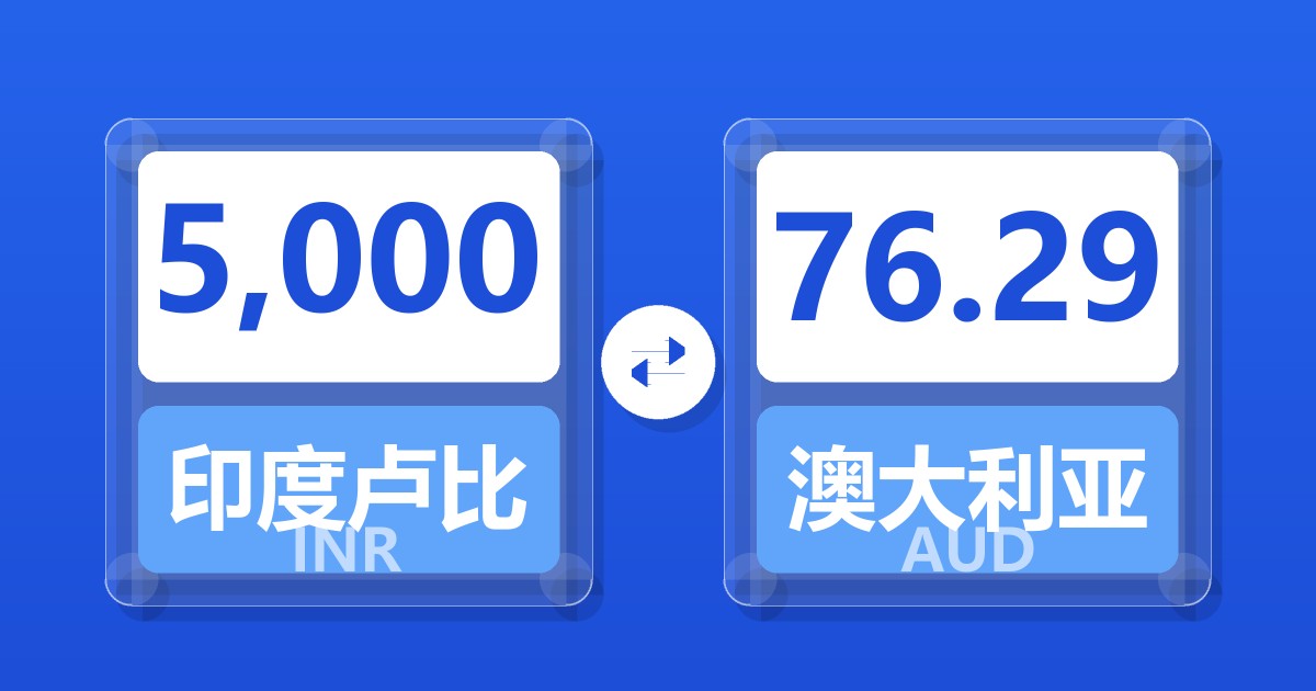 5,000 印度卢比 (INR) = 76.66 澳大利亚元 (AUD)