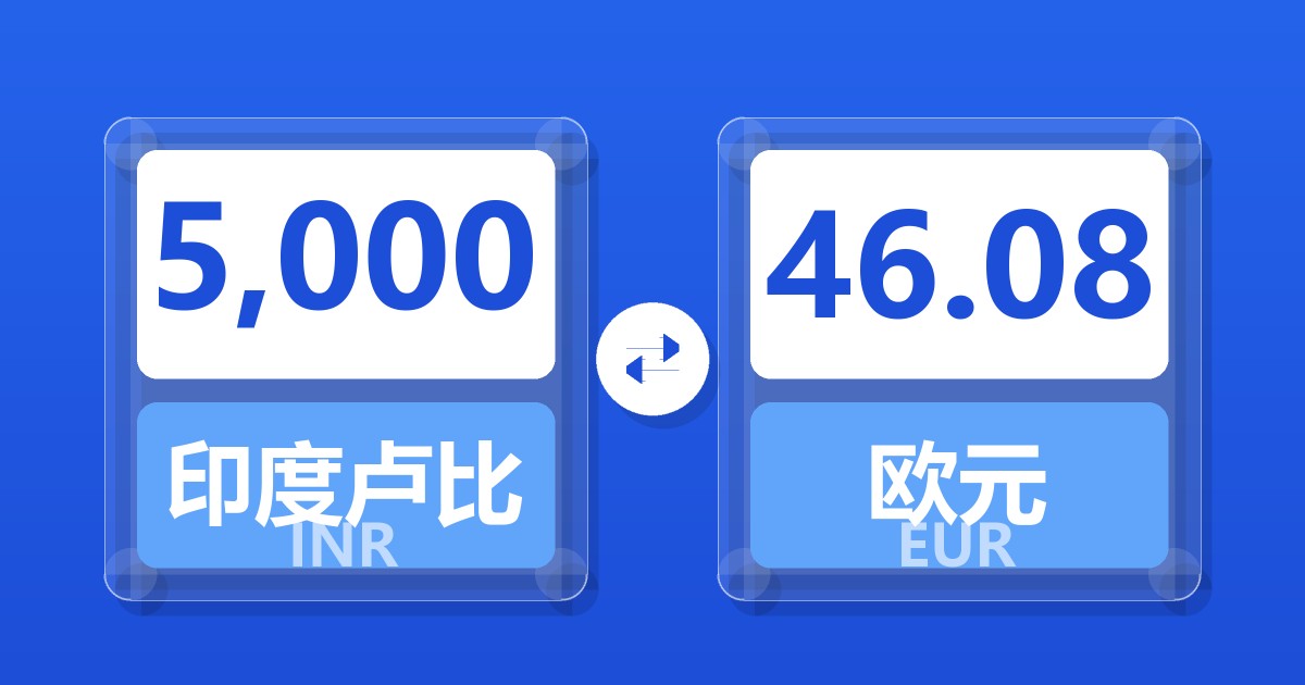 5,000 印度卢比 (INR) = 46.25 欧元 (EUR)