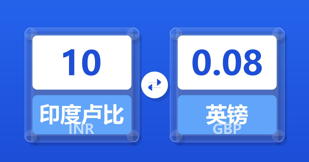 10 印度卢比 (INR) = 0.08 英镑 (GBP)
