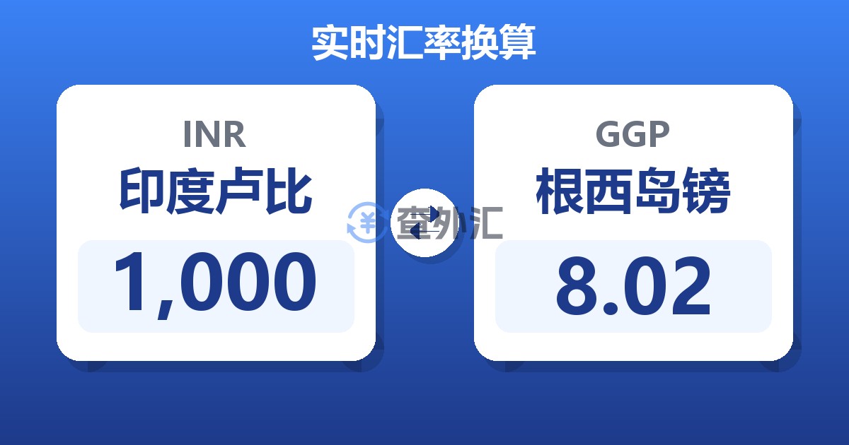 1,000 印度卢比 (INR) = 8.05 根西岛镑 (GGP)