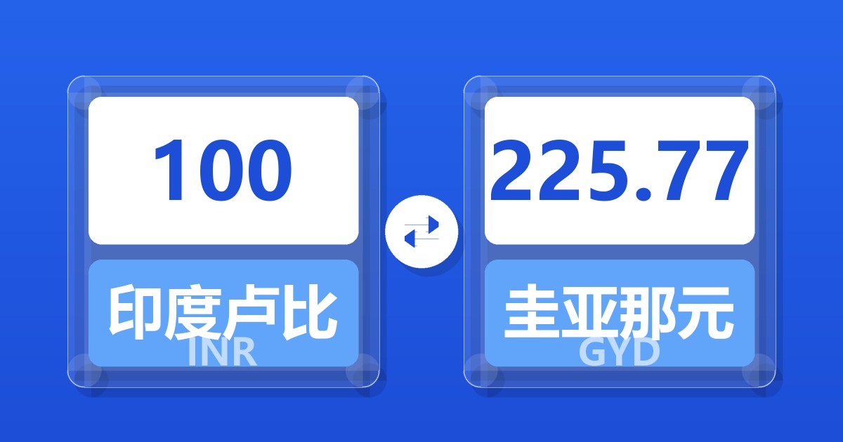 100 印度卢比 (INR) = 226.52 圭亚那元 (GYD)