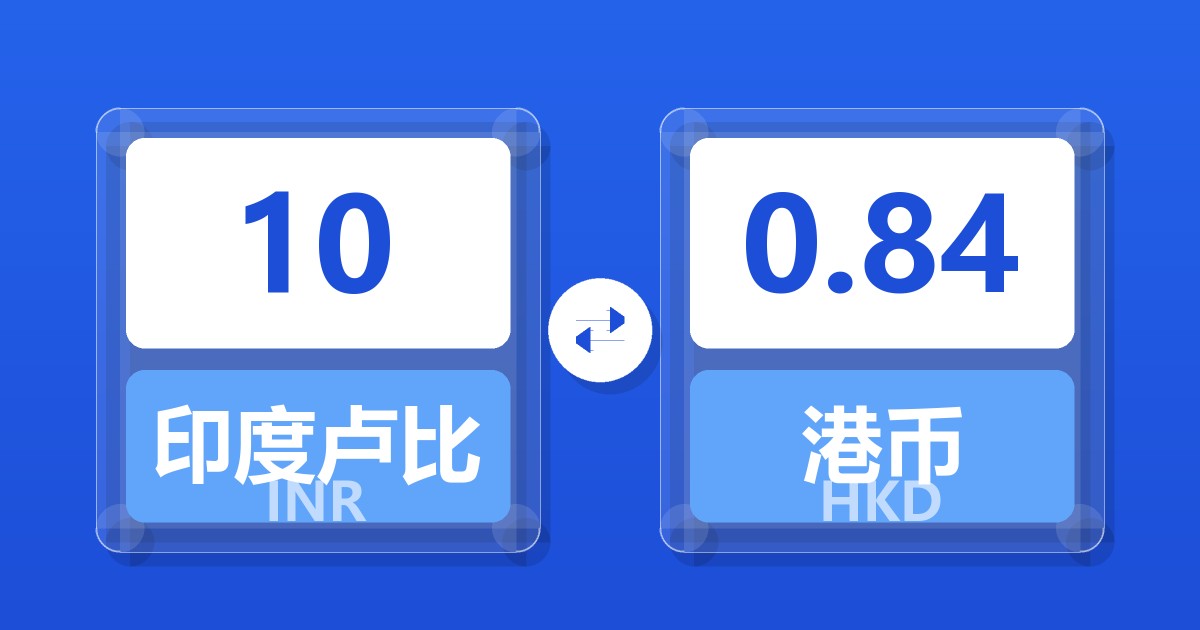 10 印度卢比 (INR) = 0.85 港币 (HKD)