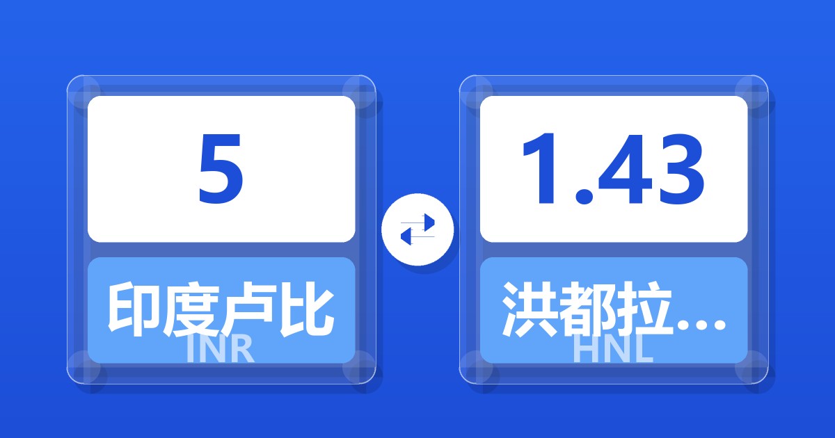 5 印度卢比 (INR) = 1.43 洪都拉斯伦皮拉 (HNL)