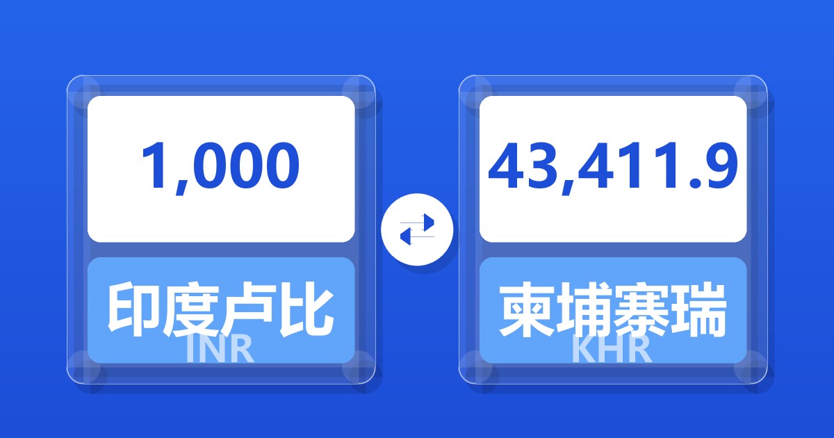 1,000 印度卢比 (INR) = 43,502.83 柬埔寨瑞尔 (KHR)