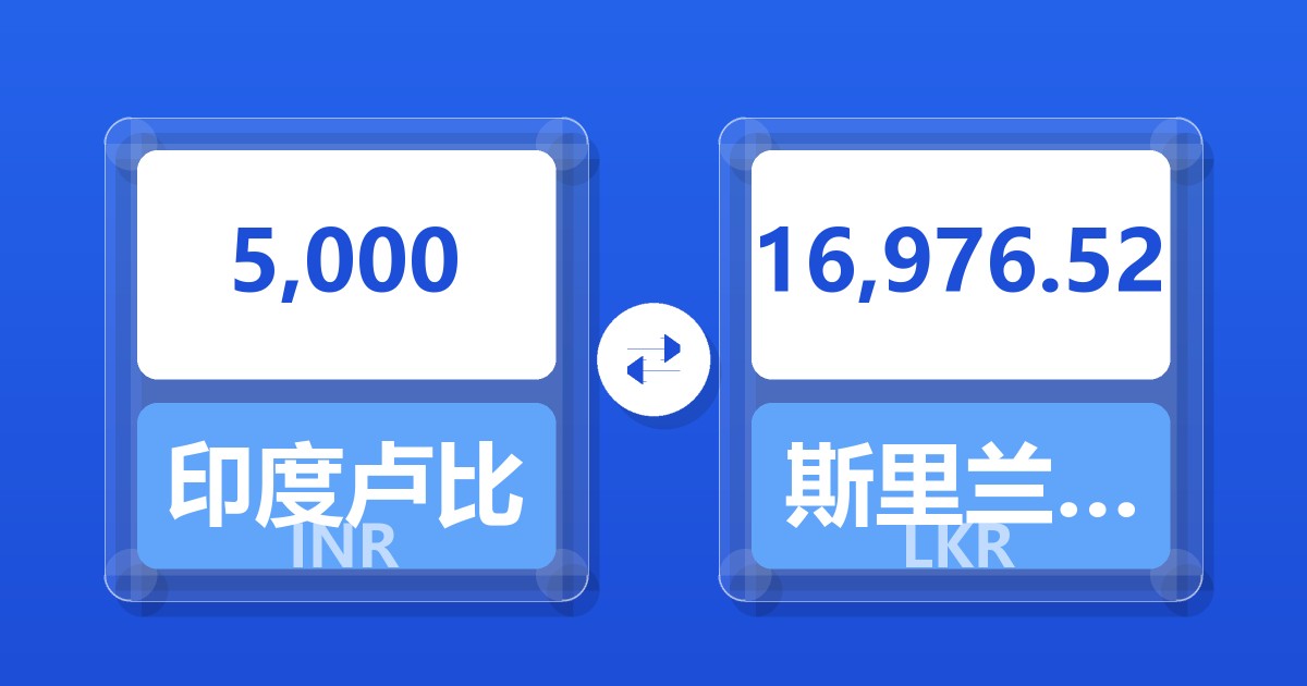 5,000 印度卢比 (INR) = 16,996.47 斯里兰卡卢比 (LKR)