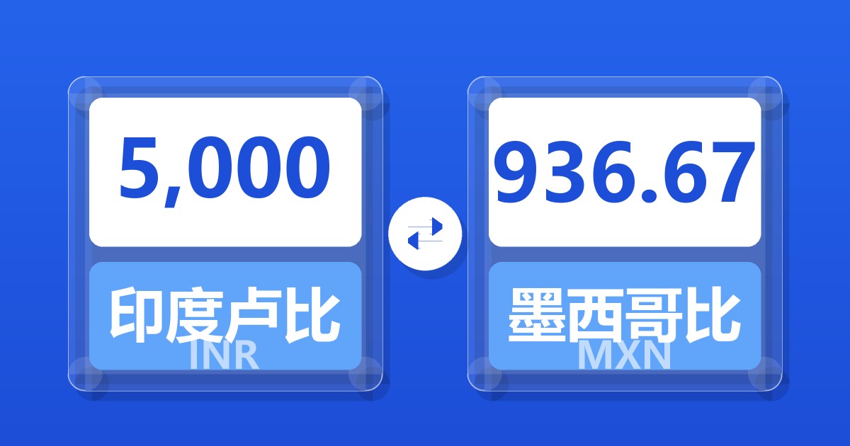 5,000 印度卢比 (INR) = 941.69 墨西哥比索 (MXN)