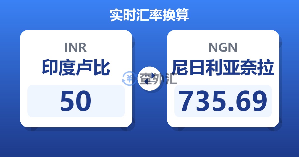 50 印度卢比 (INR) = 740.88 尼日利亚奈拉 (NGN)