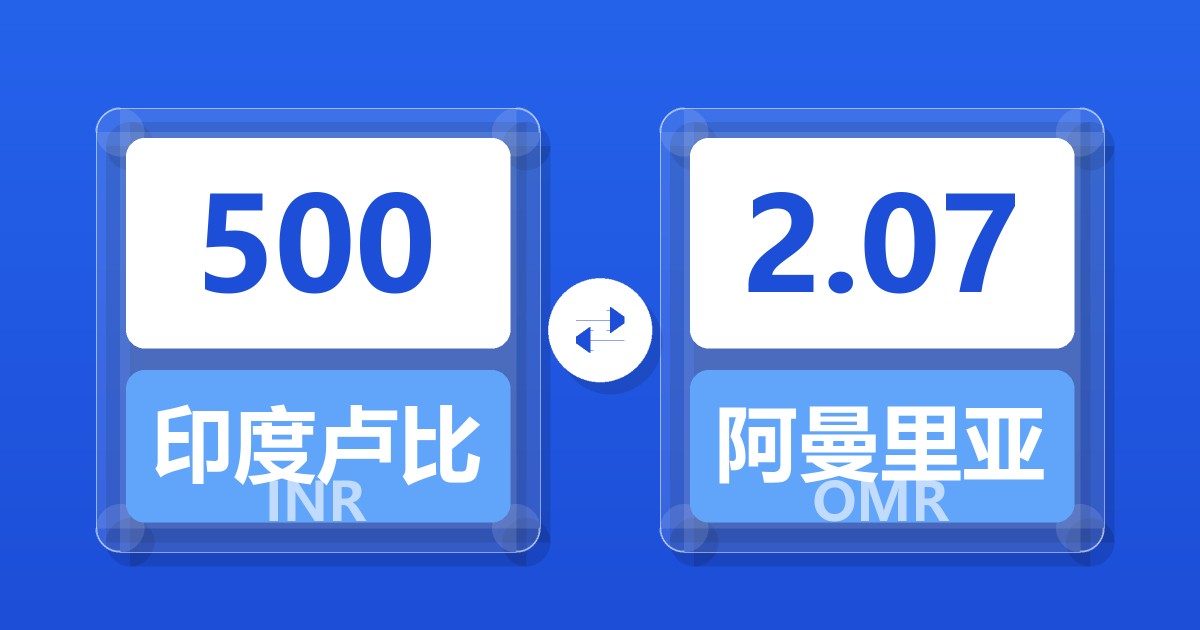 500 印度卢比 (INR) = 2.08 阿曼里亚尔 (OMR)