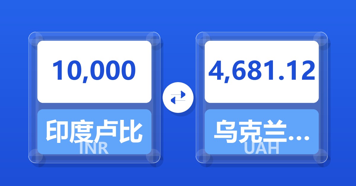 10,000 印度卢比 (INR) = 4,686.86 乌克兰格里夫纳 (UAH)