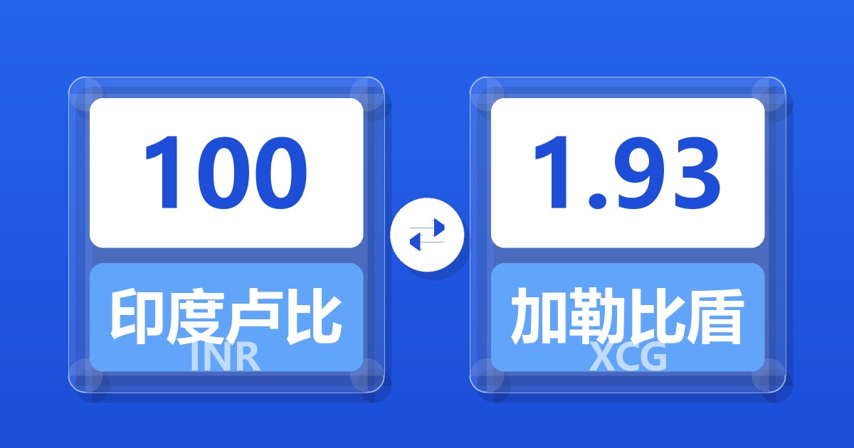 100 印度卢比 (INR) = 1.93 加勒比盾 (XCG)