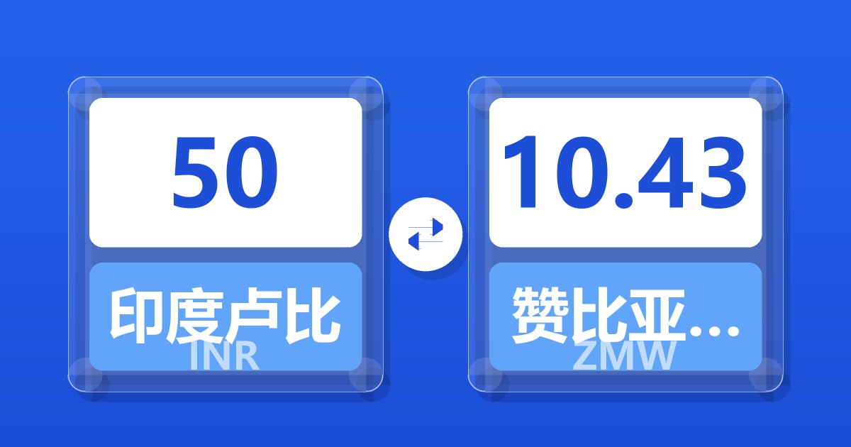 50 印度卢比 (INR) = 10.43 赞比亚克瓦查 (ZMW)