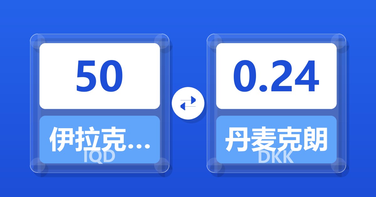 50 伊拉克第纳尔 (IQD) = 0.24 丹麦克朗 (DKK)