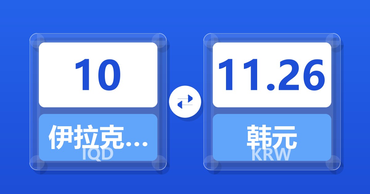 10 伊拉克第纳尔 (IQD) = 11.26 韩元 (KRW)
