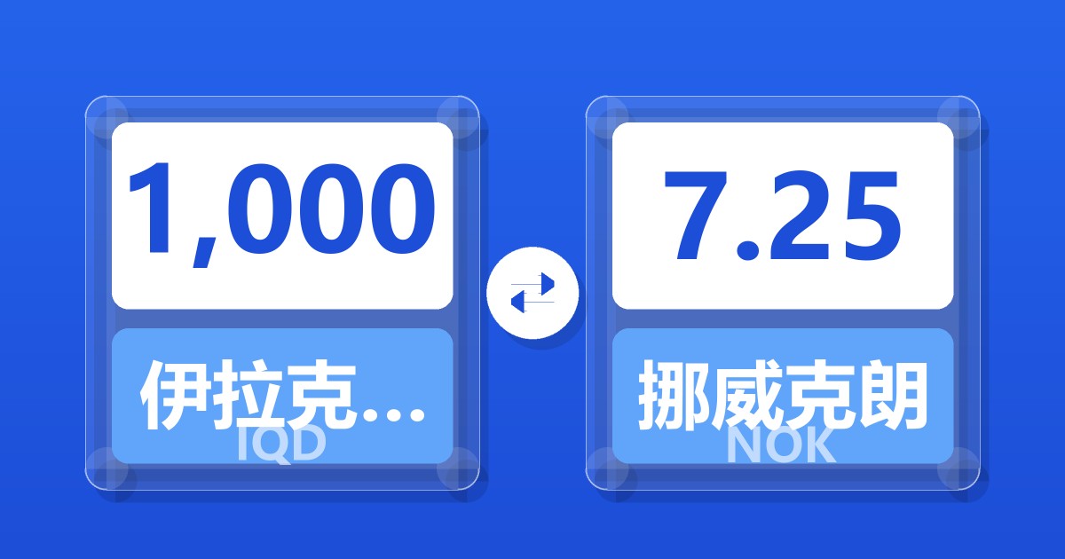 1,000 伊拉克第纳尔 (IQD) = 7.28 挪威克朗 (NOK)