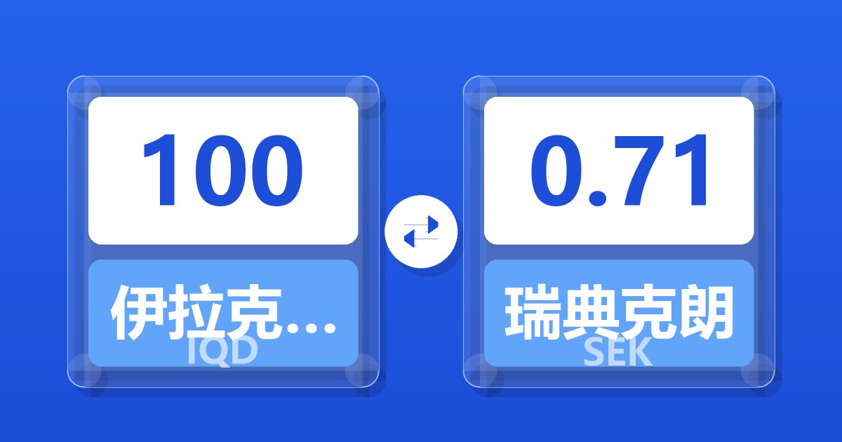 100 伊拉克第纳尔 (IQD) = 0.71 瑞典克朗 (SEK)