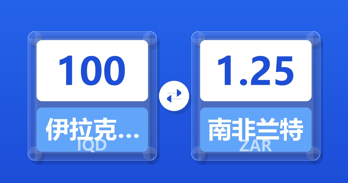 100 伊拉克第纳尔 (IQD) = 1.25 南非兰特 (ZAR)