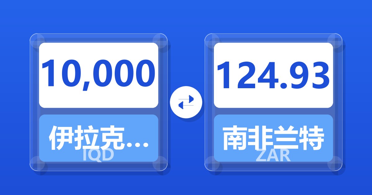 10,000 伊拉克第纳尔 (IQD) = 124.90 南非兰特 (ZAR)